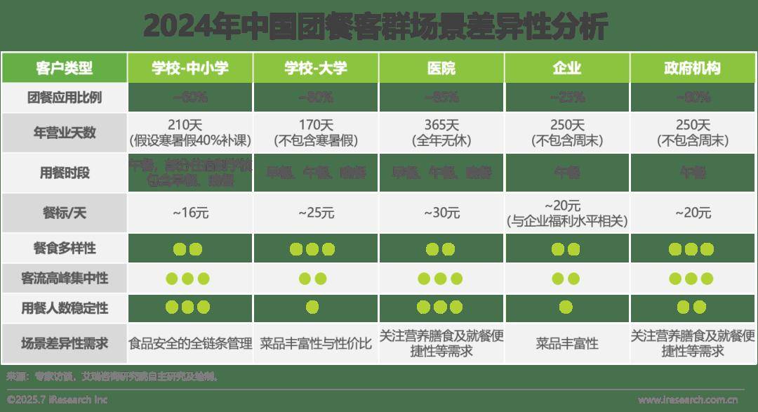2025年,数字化能力使食材采购全程可逃溯,为团餐行业带来多元供给。各客群场景对于团餐的需求特征具有较着差别。团餐企业通过“地方厨房+集体配餐”连系的体例能够帮帮提拔区域内农人收入程度、供给本地就业岗亭,投标评分系统由低价向质量倾斜、项方针准趋严,提拔运营办理效率取消费者体验。
